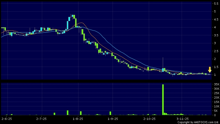 云康集团(02325.HK) -0.050 (-4.762%) 10天移动平均线跌穿20天移动平均线,出现死亡交叉。现价报1.010,无升跌,成交量0.00股,成交额0.00。