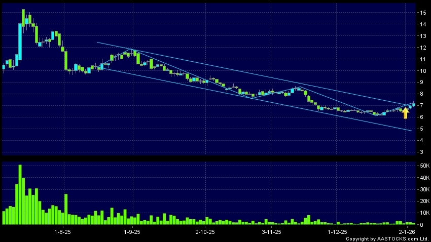 区域突破指股价在过去的一段时间只在一个范围在内活动,然後股价上升作出突破,升穿区域的顶部,技术走势向好。(港股报价延迟最少十五分钟。沽空资料截至 2026-01-08 16:25。)