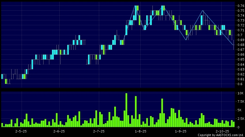 天津港发展(03382.HK) +0.010 (+1.471%) 呈现三重顶突破向下。现价报0.680,下跌2.857%,成交量1.71百万股,成交额1.17百万。