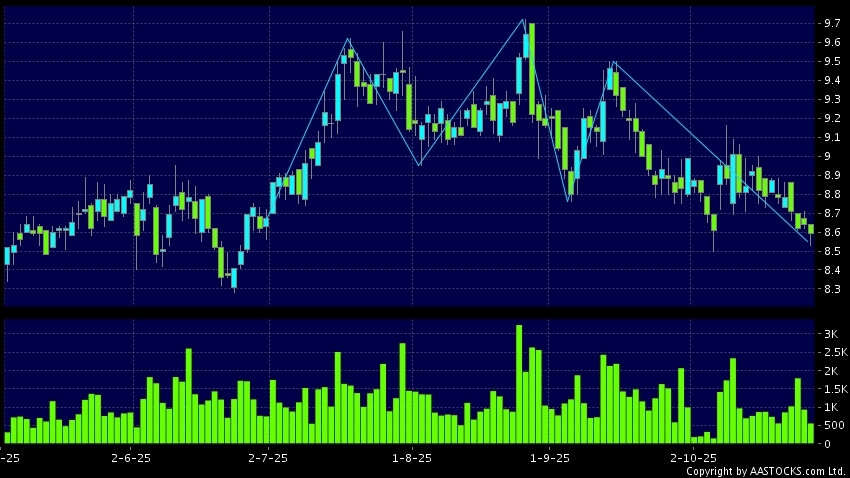 三重顶指股票上升至三个相近的高位後,开始下跌,然後形成下降趋势,属利淡讯号。三个高点成为一个阻力位,难以升破。(港股报价延迟最少十五分钟。沽空资料截至 2025-11-03 16:25。)