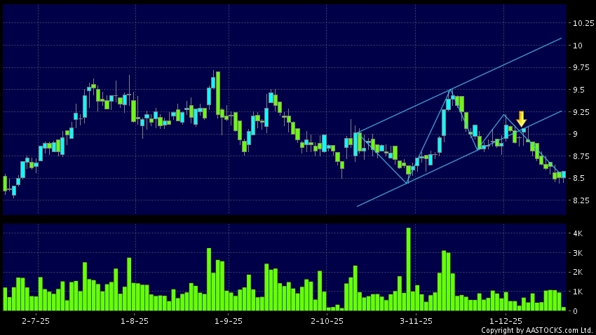 区域突破指股价在过去的一段时间只在一个范围在内活动,然後股价下跌作出突破,跌穿区域的底部,技术走势偏软。(港股报价延迟最少十五分钟。沽空资料截至 2026-01-02 16:25。)