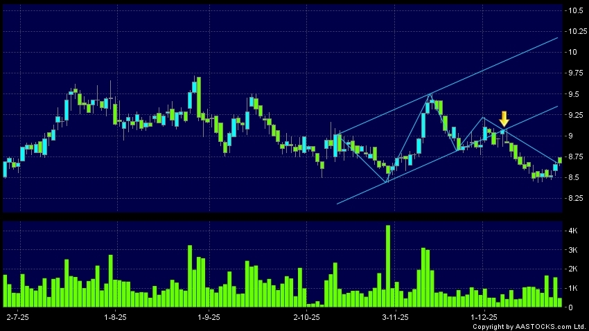 区域突破指股价在过去的一段时间只在一个范围在内活动,然後股价下跌作出突破,跌穿区域的底部,技术走势偏软。(港股报价延迟最少十五分钟。沽空资料截至 2026-01-02 16:25。)