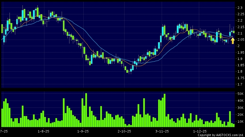 黄金交叉是一个利好讯号,指股价的短期移动平均线升穿长期移动平均线,例如50天线升穿250天线,在图表上构成交叉的形状。股价通常会上升形成一个上升趋势,技术走势向好。(港股报价延迟最少十五分钟。沽空资料截至 2026-01-12 16:25。)