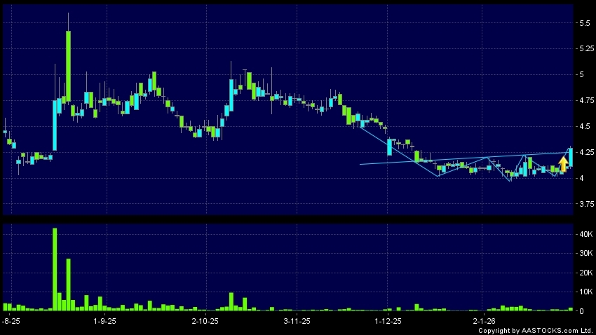 头肩底是典型的利好讯号,当股价升穿阻力线时,升势确认股价将持续上升,技术走势向好。(港股报价延迟最少十五分钟。沽空资料截至 2026-02-05 16:25。)