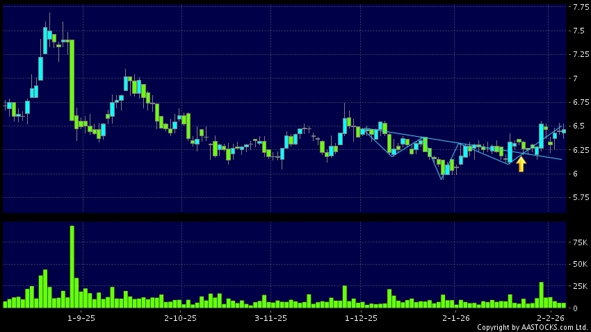 头肩底是典型的利好讯号,当股价升穿阻力线时,升势确认股价将持续上升,技术走势向好。(港股报价延迟最少十五分钟。沽空资料截至 2026-02-06 16:25。)
