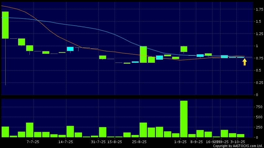 悟喜生活(08148.HK) 0.000 (0.000%) 10天移动平均线升穿20天移动平均线,出现黄金交叉。现价报0.770,无升跌,成交量0.00股,成交额0.00。