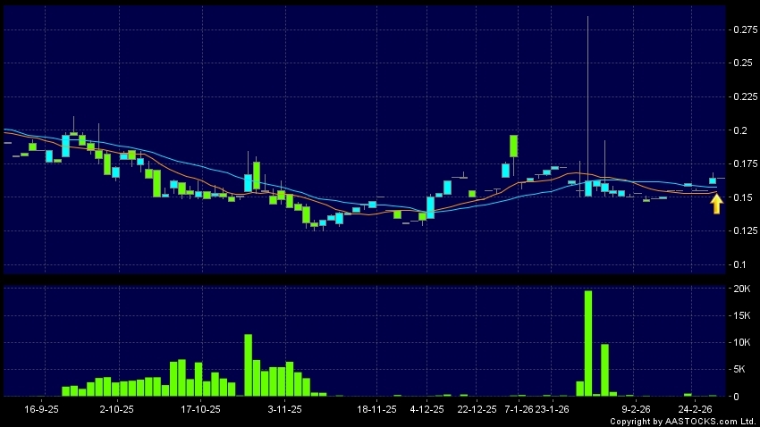 鸿伟亚洲(08191.HK) 0.000 (0.000%) 10天移动平均线升穿20天移动平均线,出现黄金交叉。现价报0.164,无升跌,成交量0.00股,成交额0.00。