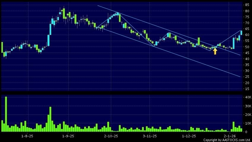 区域突破指股价在过去的一段时间只在一个范围在内活动,然後股价上升作出突破,升穿区域的顶部,技术走势向好。(港股报价延迟最少十五分钟。沽空资料截至 2026-02-12 16:25。)
