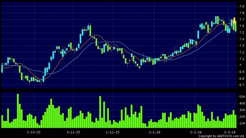 免責聲明:以上金融市場數據、報價、圖表 及/或各種技術分析指標乃根據公開資料分析和演釋自動生成的,僅作參考使用。此類自動生成的內容並不代表AASTOCKS.com Limited的立場。AASTOCKS.com Limited並不保證其準確性、完整性、實時性或者正確性。閣下應諮詢獨立專業意見,以核實定價資料或獲取更詳細的市場信息及須為所有跟隨此類自動生成的內容執行的交易或使用該內容負責。