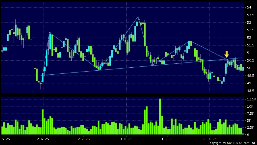 免責聲明:以上金融市場數據、報價、圖表 及/或各種技術分析指標乃根據公開資料分析和演釋自動生成的,僅作參考使用。此類自動生成的內容並不代表AASTOCKS.com Limited的立場。AASTOCKS.com Limited並不保證其準確性、完整性、實時性或者正確性。閣下應諮詢獨立專業意見,以核實定價資料或獲取更詳細的市場信息及須為所有跟隨此類自動生成的內容執行的交易或使用該內容負責。