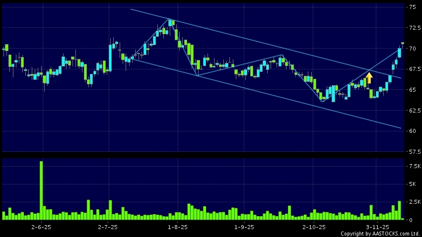 區域突破指股價在過去的一段時間只在一個範圍在內活動,然後股價上升作出突破,升穿區域的頂部,技術走勢向好。(港股報價延遲最少十五分鐘。沽空資料截至 2025-11-13 16:25。)
