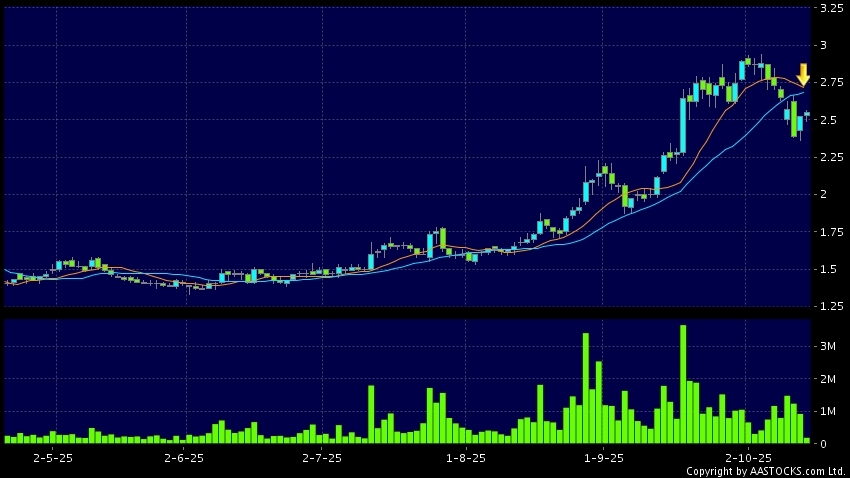 免責聲明:以上金融市場數據、報價、圖表 及/或各種技術分析指標乃根據公開資料分析和演釋自動生成的,僅作參考使用。此類自動生成的內容並不代表AASTOCKS.com Limited的立場。AASTOCKS.com Limited並不保證其準確性、完整性、實時性或者正確性。閣下應諮詢獨立專業意見,以核實定價資料或獲取更詳細的市場信息及須為所有跟隨此類自動生成的內容執行的交易或使用該內容負責。