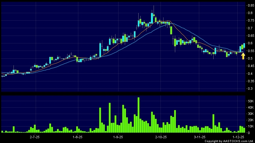 航天控股(00031.HK) +0.030 (+4.918%) 10天移動平均線升穿20天移動平均線,出現黃金交叉。現價報0.600,上升7.143%,成交量7.82百萬股,成交額4.55百萬。