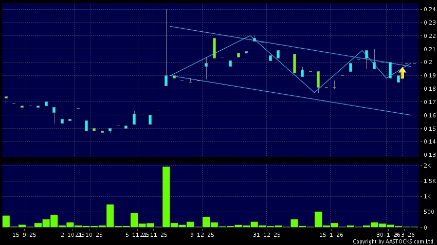 新威國際(00058.HK) 0.000 (0.000%) 呈現區域上軌突破。現價報0.199,無升跌,成交量2.00萬股,成交額3.98千。