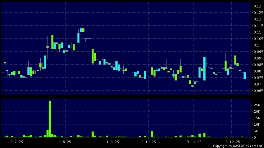綠領控股(00061.HK) +0.005 (+6.329%) 10天移動平均線跌穿20天移動平均線,出現死亡交叉。現價報0.081,無升跌,成交量0.00股,成交額0.00。