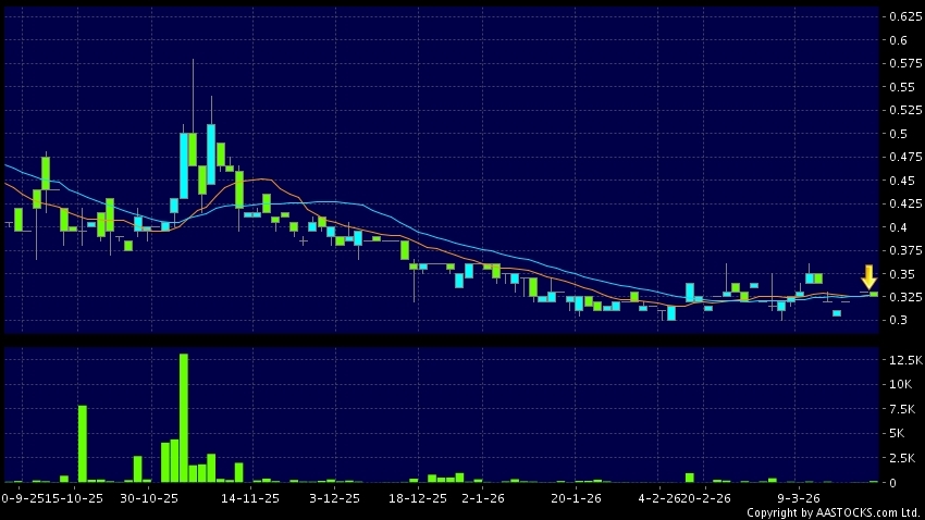 免責聲明:以上金融市場數據、報價、圖表 及/或各種技術分析指標乃根據公開資料分析和演釋自動生成的,僅作參考使用。此類自動生成的內容並不代表AASTOCKS.com Limited的立場。AASTOCKS.com Limited並不保證其準確性、完整性、實時性或者正確性。閣下應諮詢獨立專業意見,以核實定價資料或獲取更詳細的市場信息及須為所有跟隨此類自動生成的內容執行的交易或使用該內容負責。