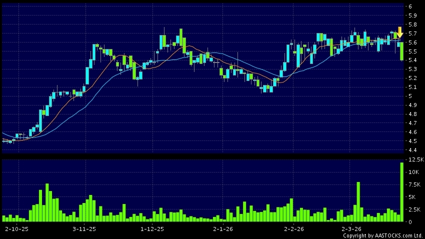 免責聲明:以上金融市場數據、報價、圖表 及/或各種技術分析指標乃根據公開資料分析和演釋自動生成的,僅作參考使用。此類自動生成的內容並不代表AASTOCKS.com Limited的立場。AASTOCKS.com Limited並不保證其準確性、完整性、實時性或者正確性。閣下應諮詢獨立專業意見,以核實定價資料或獲取更詳細的市場信息及須為所有跟隨此類自動生成的內容執行的交易或使用該內容負責。