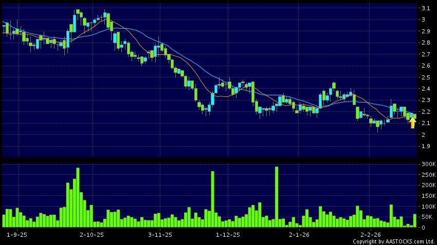 免責聲明:以上金融市場數據、報價、圖表 及/或各種技術分析指標乃根據公開資料分析和演釋自動生成的,僅作參考使用。此類自動生成的內容並不代表AASTOCKS.com Limited的立場。AASTOCKS.com Limited並不保證其準確性、完整性、實時性或者正確性。閣下應諮詢獨立專業意見,以核實定價資料或獲取更詳細的市場信息及須為所有跟隨此類自動生成的內容執行的交易或使用該內容負責。