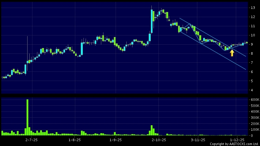 區域突破指股價在過去的一段時間只在一個範圍在內活動,然後股價上升作出突破,升穿區域的頂部,技術走勢向好。(港股報價延遲最少十五分鐘。沽空資料截至 2025-12-31 12:25。)
