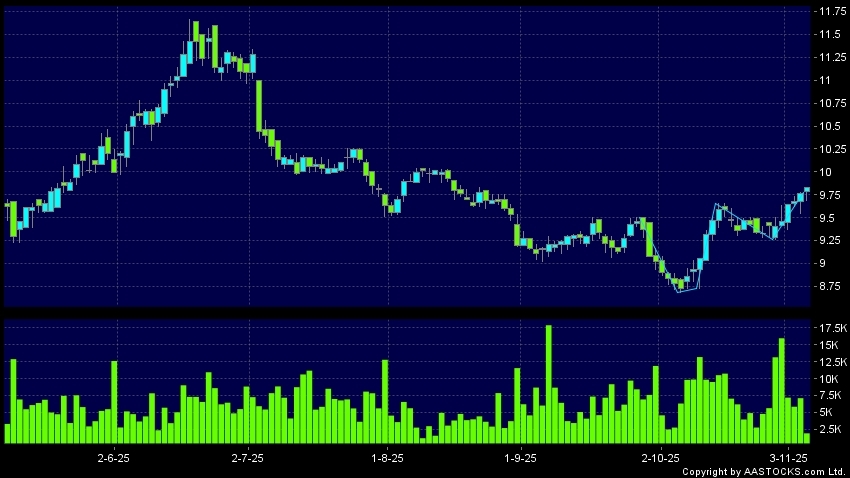 過去5 天平均成交量: 9.87百萬股