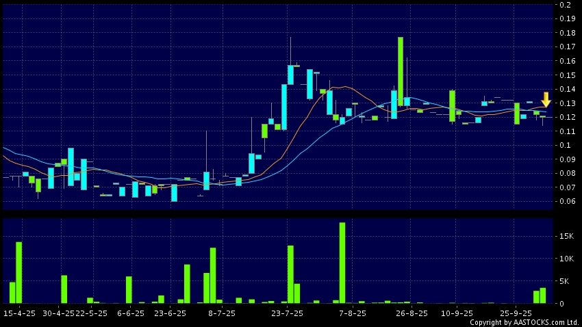 正商實業(00185.HK) -0.010 (-10.309%) 10天移動平均線跌穿20天移動平均線,出現死亡交叉。現價報0.120,無升跌,成交量0.00股,成交額0.00。