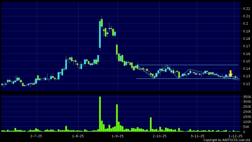 大陸航空科技控股(00232.HK) +0.004 (+2.878%) 呈現區域下軌突破。現價報0.127,下跌0.781%,成交量4.68百萬股,成交額58.99萬。