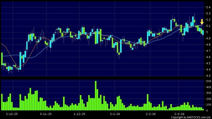 免責聲明:以上金融市場數據、報價、圖表 及/或各種技術分析指標乃根據公開資料分析和演釋自動生成的,僅作參考使用。此類自動生成的內容並不代表AASTOCKS.com Limited的立場。AASTOCKS.com Limited並不保證其準確性、完整性、實時性或者正確性。閣下應諮詢獨立專業意見,以核實定價資料或獲取更詳細的市場信息及須為所有跟隨此類自動生成的內容執行的交易或使用該內容負責。