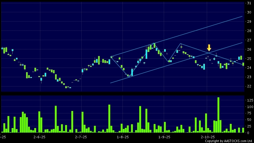 區域突破指股價在過去的一段時間只在一個範圍在內活動,然後股價下跌作出突破,跌穿區域的底部,技術走勢偏軟。(港股報價延遲最少十五分鐘。)
