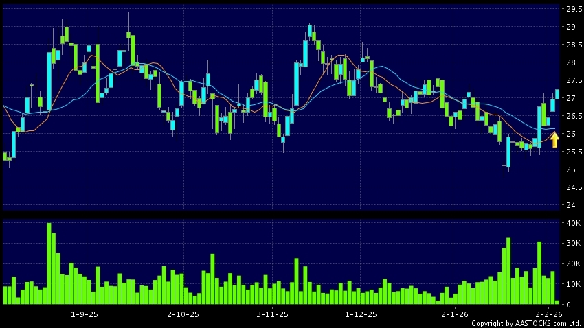 黃金交叉是一個利好訊號,指股價的短期移動平均線升穿長期移動平均線,例如50天線升穿250天線,在圖表上構成交叉的形狀。股價通常會上升形成一個上升趨勢,技術走勢向好。(港股報價延遲最少十五分鐘。沽空資料截至 2026-02-06 16:25。)