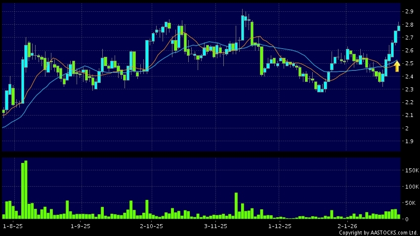 免責聲明:以上金融市場數據、報價、圖表 及/或各種技術分析指標乃根據公開資料分析和演釋自動生成的,僅作參考使用。此類自動生成的內容並不代表AASTOCKS.com Limited的立場。AASTOCKS.com Limited並不保證其準確性、完整性、實時性或者正確性。閣下應諮詢獨立專業意見,以核實定價資料或獲取更詳細的市場信息及須為所有跟隨此類自動生成的內容執行的交易或使用該內容負責。