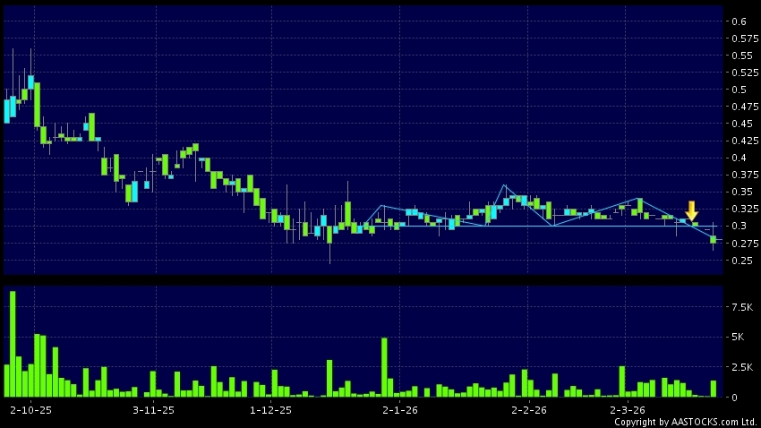 免責聲明:以上金融市場數據、報價、圖表 及/或各種技術分析指標乃根據公開資料分析和演釋自動生成的,僅作參考使用。此類自動生成的內容並不代表AASTOCKS.com Limited的立場。AASTOCKS.com Limited並不保證其準確性、完整性、實時性或者正確性。閣下應諮詢獨立專業意見,以核實定價資料或獲取更詳細的市場信息及須為所有跟隨此類自動生成的內容執行的交易或使用該內容負責。