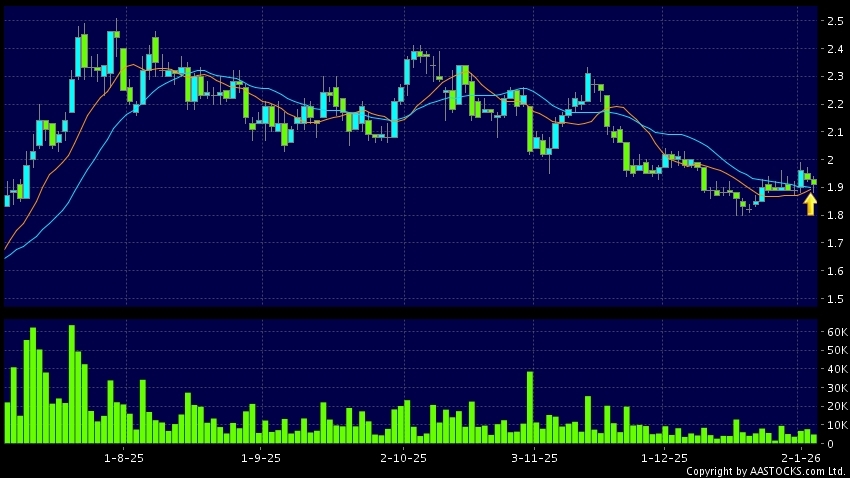 鞍鋼股份(00347.HK) -0.050 (-2.604%) 沽空 $5.84百萬; 比率 22.772% 10天移動平均線升穿20天移動平均線,出現黃金交叉。現價報1.900,下跌1.554%,成交量5.48百萬股,成交額1.04千萬。
