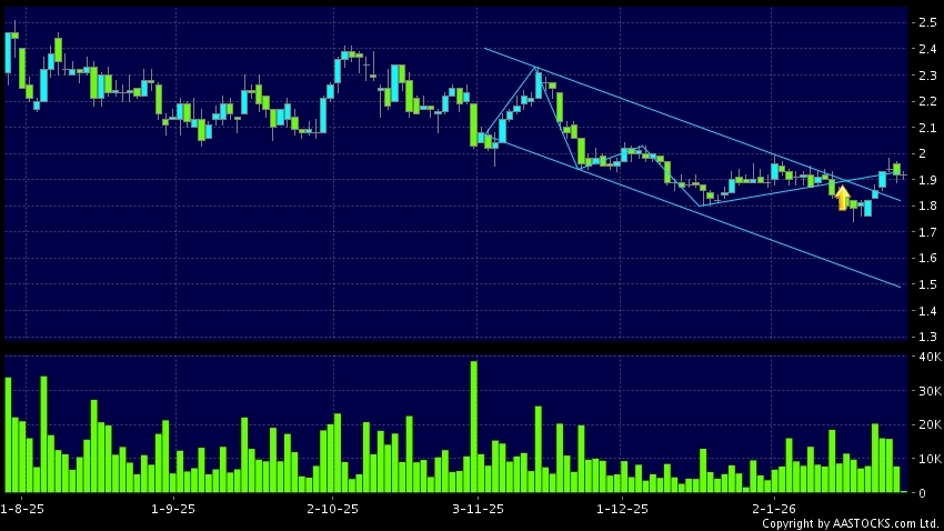 區域突破指股價在過去的一段時間只在一個範圍在內活動,然後股價上升作出突破,升穿區域的頂部,技術走勢向好。(港股報價延遲最少十五分鐘。沽空資料截至 2026-01-30 16:25。)