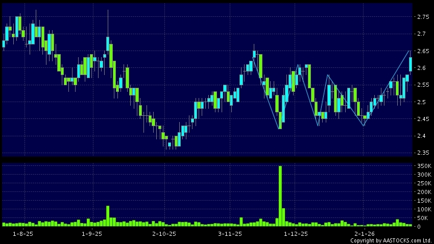 免責聲明:以上金融市場數據、報價、圖表 及/或各種技術分析指標乃根據公開資料分析和演釋自動生成的,僅作參考使用。此類自動生成的內容並不代表AASTOCKS.com Limited的立場。AASTOCKS.com Limited並不保證其準確性、完整性、實時性或者正確性。閣下應諮詢獨立專業意見,以核實定價資料或獲取更詳細的市場信息及須為所有跟隨此類自動生成的內容執行的交易或使用該內容負責。