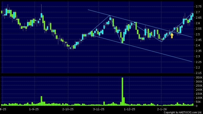 區域突破指股價在過去的一段時間只在一個範圍在內活動,然後股價上升作出突破,升穿區域的頂部,技術走勢向好。(港股報價延遲最少十五分鐘。沽空資料截至 2026-02-23 12:25。)