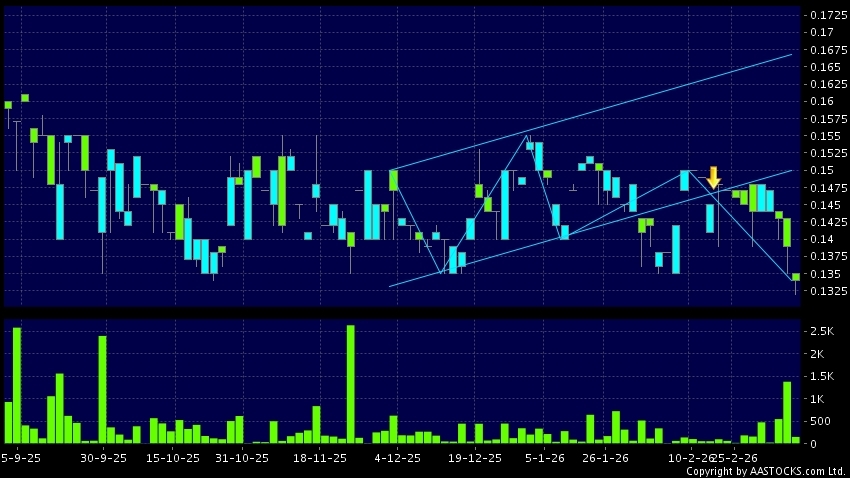 免責聲明:以上金融市場數據、報價、圖表 及/或各種技術分析指標乃根據公開資料分析和演釋自動生成的,僅作參考使用。此類自動生成的內容並不代表AASTOCKS.com Limited的立場。AASTOCKS.com Limited並不保證其準確性、完整性、實時性或者正確性。閣下應諮詢獨立專業意見,以核實定價資料或獲取更詳細的市場信息及須為所有跟隨此類自動生成的內容執行的交易或使用該內容負責。