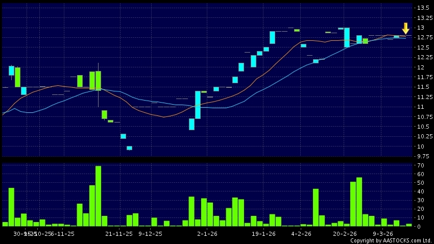 南順(香港)(00411.HK) -0.010 (-0.079%) 10天移動平均線跌穿20天移動平均線,出現死亡交叉。現價報12.800,無升跌,成交量3.00千股,成交額3.84萬。
