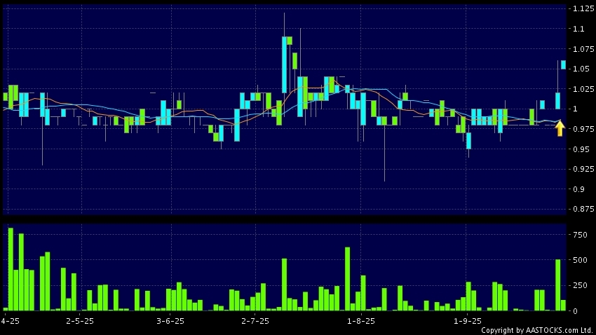 興業合金(00505.HK) +0.010 (+1.010%) 10天移動平均線升穿20天移動平均線,出現黃金交叉。現價報1.060,上升3.922%,成交量11.20萬股,成交額11.79萬。