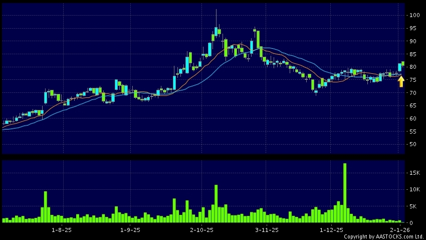 ASMPT(00522.HK) +5.250 (+6.158%) 沽空 $3.78千萬; 比率 13.384% 10天移動平均線升穿20天移動平均線,出現黃金交叉。現價報80.400,下跌0.985%,成交量18.08萬股,成交額1.46千萬。