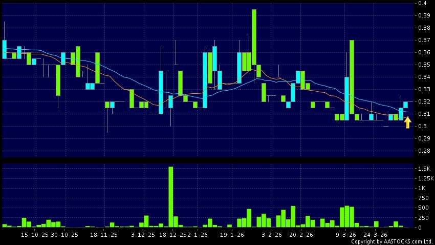 太平洋網絡(00543.HK) -0.005 (-1.563%) 10天移動平均線升穿20天移動平均線,出現黃金交叉。現價報0.320,無升跌,成交量0.00股,成交額0.00。
