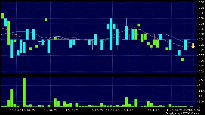 悅達國際控股(00629.HK) -0.005 (-1.667%) 10天移動平均線跌穿20天移動平均線,出現死亡交叉。現價報0.280,無升跌,成交量0.00股,成交額0.00。