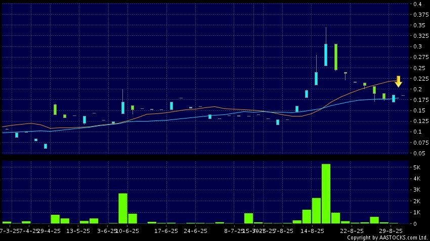 死亡交叉是一個利淡信號,指股價的短期移動平均線跌穿長期移動平均線,例如50天線跌穿250天線,在圖表上構成交叉的形狀。股價通常會下跌形成一個下降趨勢,技術走勢偏軟。(港股報價延遲最少十五分鐘。)