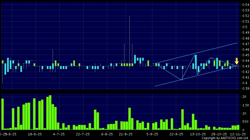 亞洲聯合基建控股(00711.HK) 0.000 (0.000%) 呈現區域下軌突破。現價報0.430,無升跌,成交量29.80萬股,成交額12.94萬。