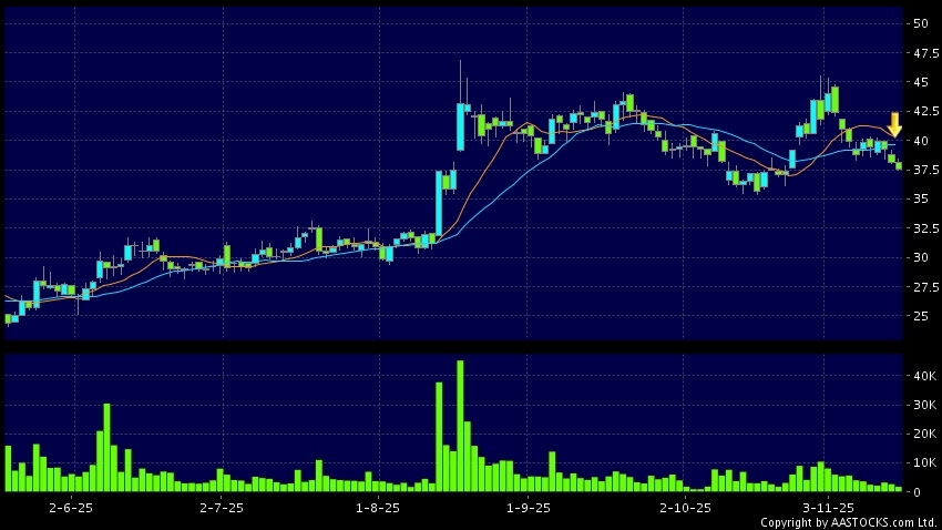 閱文集團(00772.HK) -0.700 (-1.902%) 沽空 $1.76千萬; 比率 13.243% 10天移動平均線跌穿20天移動平均線,出現死亡交叉。現價報37.560,下跌1.572%,成交量1.72百萬股,成交額6.52千萬。