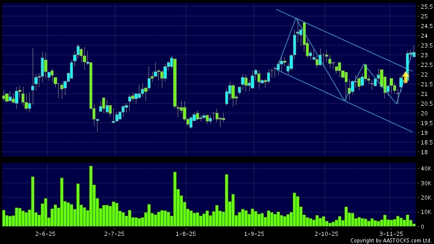 區域突破指股價在過去的一段時間只在一個範圍在內活動,然後股價上升作出突破,升穿區域的頂部,技術走勢向好。(港股報價延遲最少十五分鐘。沽空資料截至 2025-11-21 16:25。)