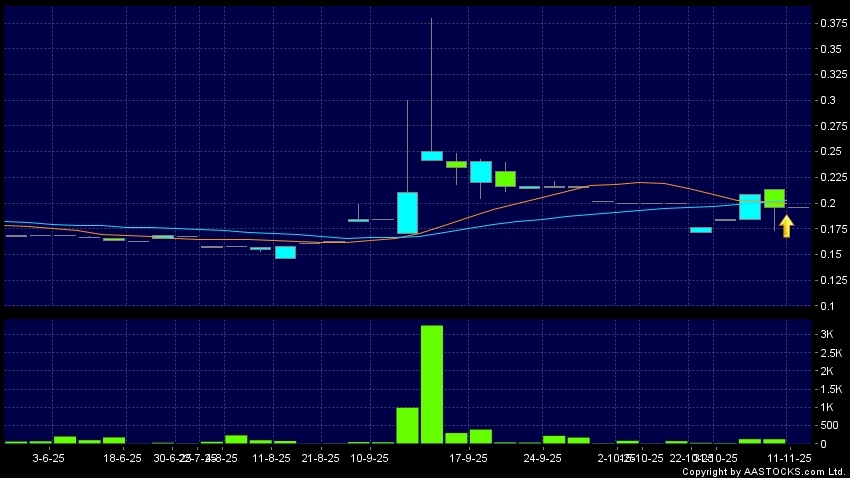 錦勝集團(控股)(00794.HK) 0.000 (0.000%) 10天移動平均線升穿20天移動平均線,出現黃金交叉。現價報0.196,無升跌,成交量0.00股,成交額0.00。