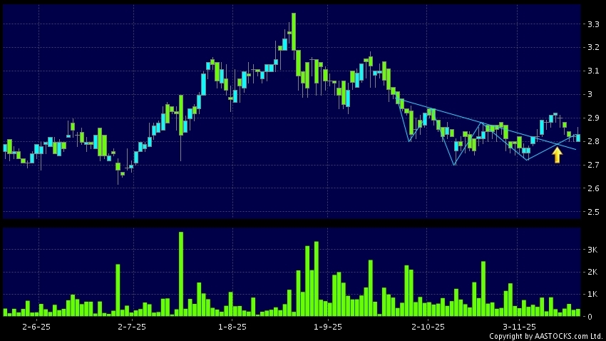 頭肩底是典型的利好訊號,當股價升穿阻力線時,升勢確認股價將持續上升,技術走勢向好。(港股報價延遲最少十五分鐘。)
