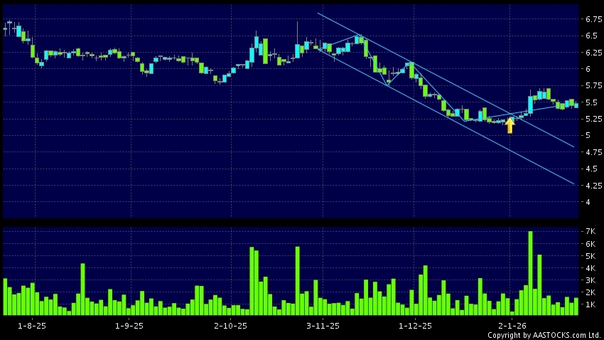 區域突破指股價在過去的一段時間只在一個範圍在內活動,然後股價上升作出突破,升穿區域的頂部,技術走勢向好。(港股報價延遲最少十五分鐘。沽空資料截至 2026-01-26 12:25。)