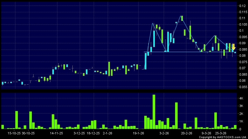 中國疏浚環保(00871.HK) -0.006 (-6.742%) 呈現頭肩頂向下突破。現價報0.083,下跌6.742%,成交量52.00萬股,成交額4.30萬。
