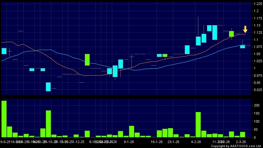 萬事昌國際(00898.HK) 0.000 (0.000%) 10天移動平均線跌穿20天移動平均線,出現死亡交叉。現價報1.080,無升跌,成交量800.00股,成交額800.00。